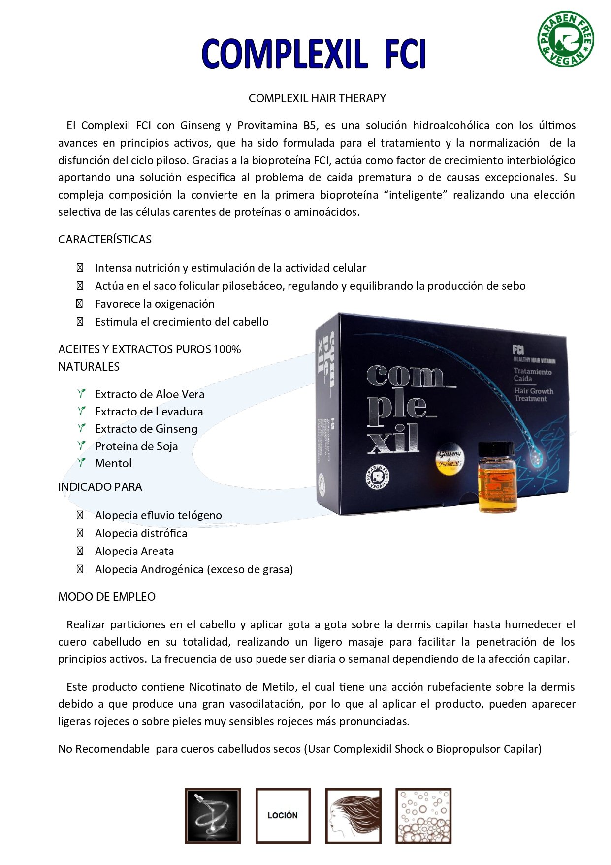 No Recomendable para cueros cabellos secos (Usar Complexidil Shock o Biopropulsor Capilar)
