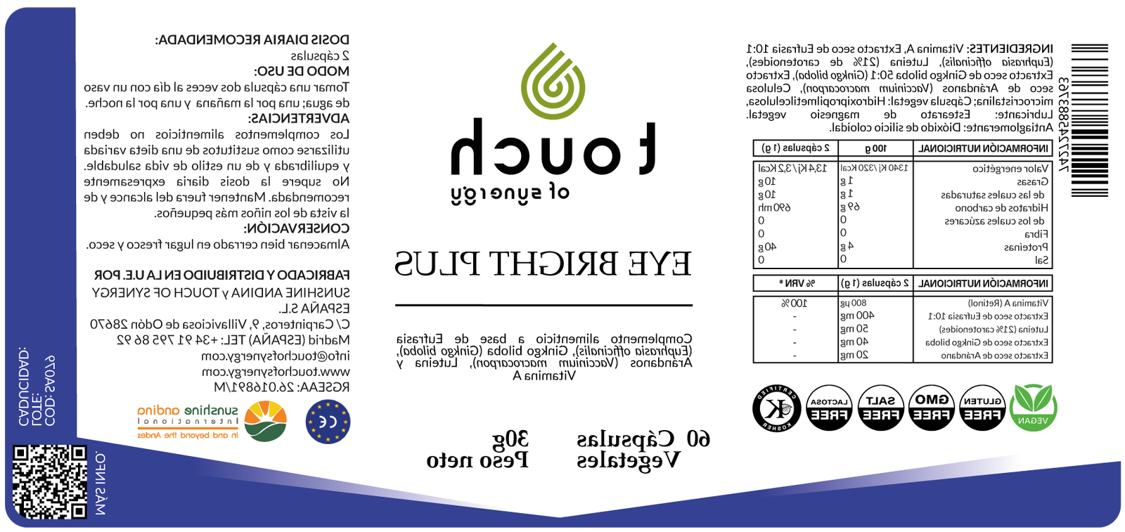 Eye Bright + de Touch of Synergy es el aliado natural para mantener la visión saludable, proteger contra la degeneración ocular y mejorar la funcionalidad visual en el día a día.