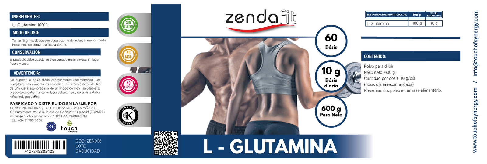 La L-Glutamina es el aminoácido más abundante en los músculos y juega un papel clave en la producción de energía y la neutralización de desechos metabólicos generados durante el ejercicio. Además, facilita el almacenamiento de glucógeno y potencia la síntesis de proteínas, lo que permite mantener y aumentar la masa muscular. Su suplementación regular favorece tanto el rendimiento deportivo como un estilo de vida saludable.