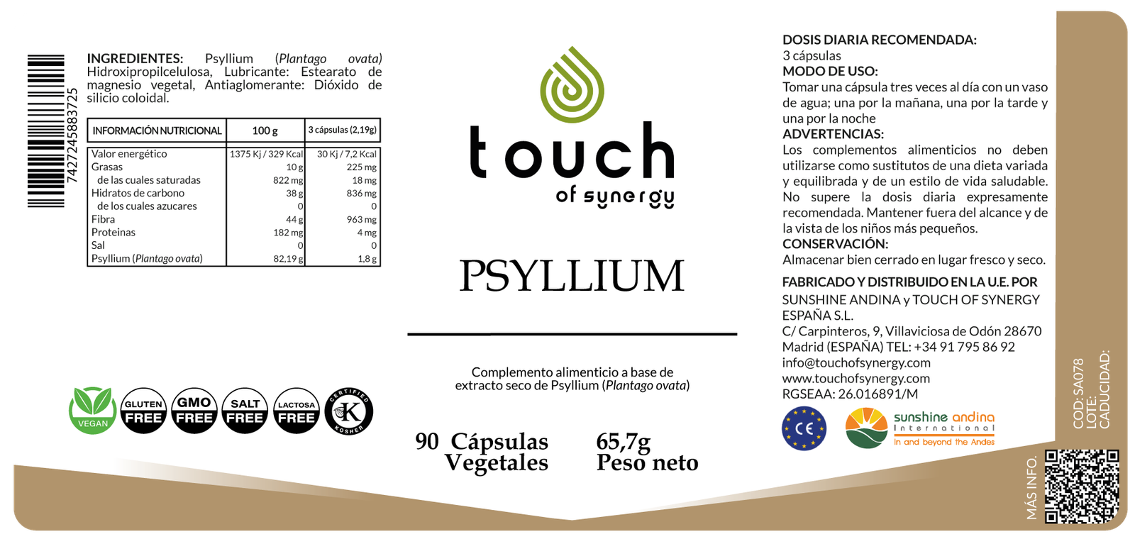 El Psyllium (Plantago ovata) es una de las fuentes de fibra dietética soluble más concentradas conocidas, compuesta en más de un 85 % por fibra soluble. Es especialmente útil para mejorar la salud digestiva y metabólica de manera suave, eficaz y segura.