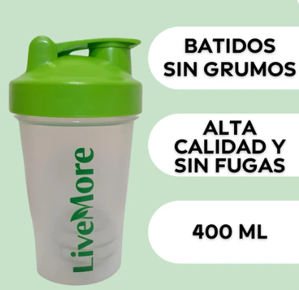 Durabilidad y Estilo: Fabricado con materiales de alta calidad, el shaker de LiveMore no solo es duradero, sino que también tiene un diseño elegante que complementa tu estilo de vida saludable.