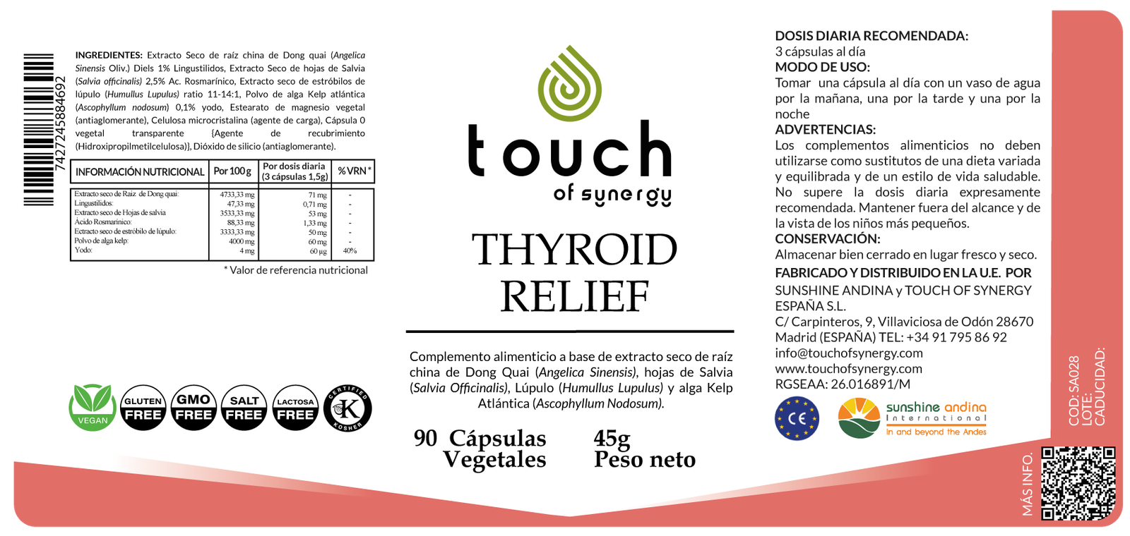Thyroid Relief (Kelp, Salvia, Lúpulo) – 90 cápsulas vegetales (Apoyo para la tiroides)