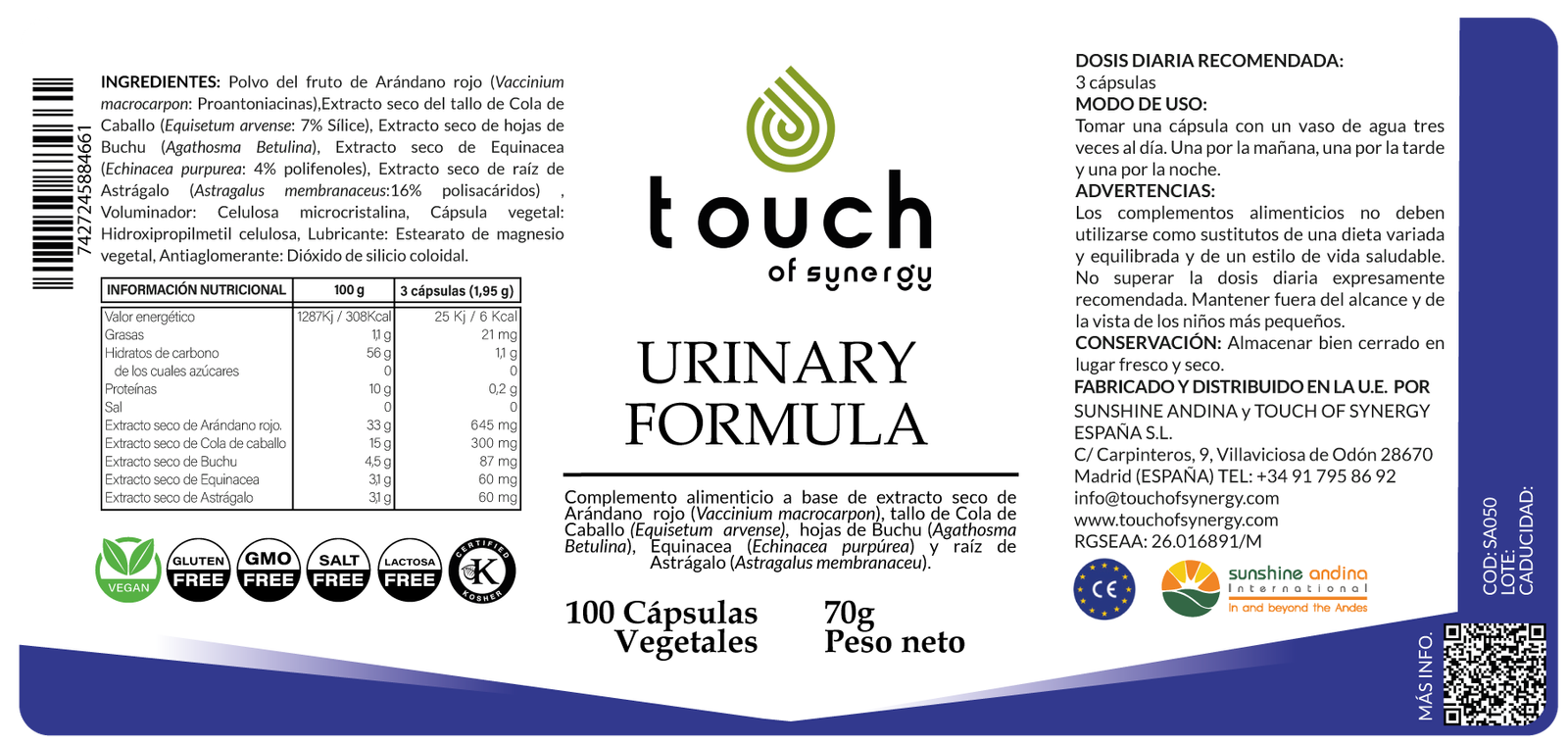Urinary Formula – 100 cápsulas vegetales (Apoyo al riñón y vías urinarias)